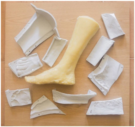 Twelve hours after completing this process, the positives were removed by removing the moulds one by one, and by eliminating the remains of the petroleum jelly from their surfaces (Figure 8).