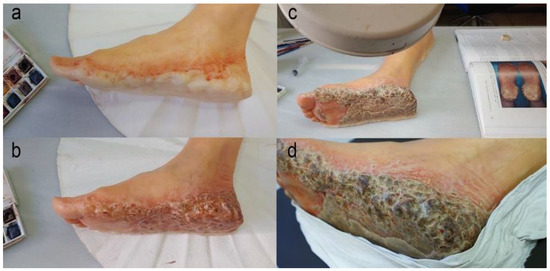 One of the objectives of this study was to make a diagnosis of the dermatologic disorder that was intended to be represented with this moulage, and, in order to establish it, the positive was shown to different dermatologist members of the Fundación Piel Sana de la Academia Española de Dermatología y Venereología (the Healthy Skin Foundation of the Spanish Academy of Dermatology and Venerology). All of them agreed that the disease that was most likely to be reflected in the work was a palmoplantar keratoderma, although it was impossible to determine a specific aetiology for it. The diagnosis was based on the characteristic shape, size, thickness, and location of this type of lesion.