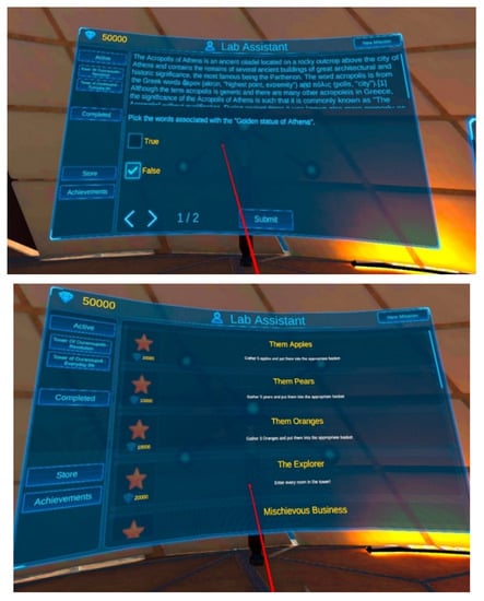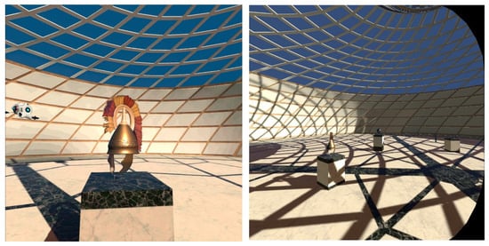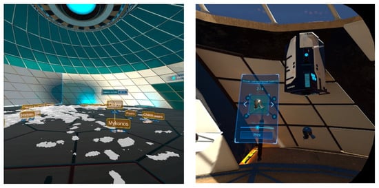 As far as the field of Historical Game Studies is concerned, it was particularly developed during the last decade [,]. However, its origins can be traced back to the middle of the previous decade, during which scholars started envisaging a new potential of digital games; that of a creative industry that brought an educational and cultural perspective []. To illustrate this, we refer to a couple of milestones in Historic Game Studies, as well as in the wider field of digital games addressing learning and culture. The first one is Kurt Squire’s [] dissertation “Replaying History: Learning World History through Playing Civilization III”, which presents the use of Sid Meier’s Civilization digital game for teaching History in schools. Another milestone is Uricchio’s [] article in 2005, which establishes the foundations for the development of the new field of Historical Game Studies, focusing not only on individual historic games or their application in other fields such as education, but also examines digital games per se, as a constituent of a historical form with variations and patterns. Furthermore, Uricchio [] predicted that the exploration of the relationship between history and games will become the future research questions that will preoccupy scholars in the near future []. Since then, the field of Historical Game Studies has become a distinct research area (part of the game studies area) gathering its own research interest and forming a bibliography directly related with how history should be interpreted, represented, and played with []. The proposed use-case in the current article contribute towards this research area by implementing the aspect of Virtual Reality when teaching and presenting history in a gamified and more interactive way.