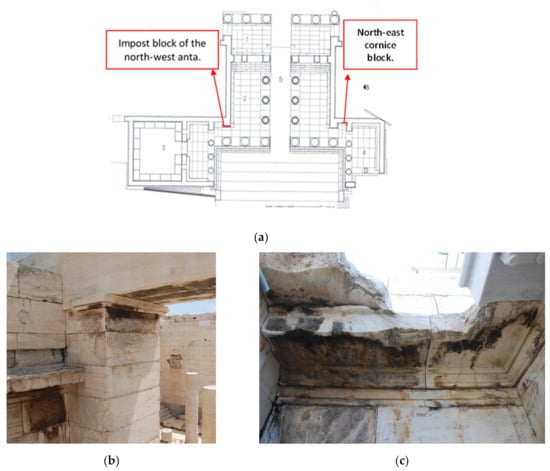 3.5. Propylaea—Impost Block of the North-West Anta in the Central Building