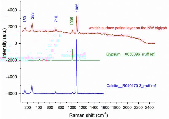 - Bersani, D.; Lottici, P.P. Raman spectroscopy of minerals and mineral pigments in archaeometry. J. Raman Spectrosc. 2016, 47, 499–530. [Google Scholar] [CrossRef]