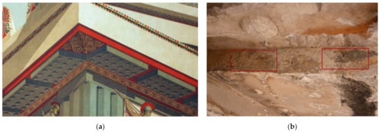 - Frantzi, G.; Maridaki, A.; Papakonstantinou, E.; Verri, G.; Sotiropoulou, S.; Brekoulaki, H. The revelation of the decorative pattern of the coffered ceiling of the Maidens’ Porch in the Erechtheion. In Proceedings of the 7th Round Table on Greek and Roman Sculptural and Architectural Polychromy, Athens, Greece, 7–8 November 2013; Brekoulaki, H., Ed.; in preparation. [Google Scholar]
