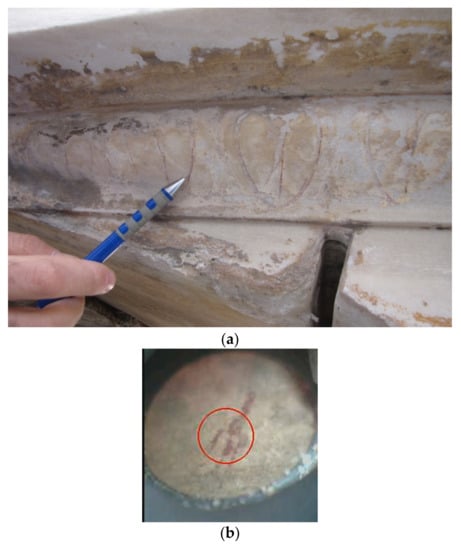 - Kouzeli, K.; Belogiannis, N.; Dogani, G.; Tolias, A. Μελέτη των έγχρωμων στρωμάτων που διακρίνονται στις επιφάνειες των μνημείων. In Μελέτη αποκαταστάσεως του Παρθενώνος ΙΙa; Korres, M., Ed.; Hellenic Ministry of Culture: Athens, Greece, 1989; pp. 198–202. [Google Scholar]