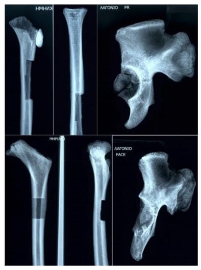 The whole skeleton was examined macroscopically for any pathological lesions. Multiple X-rays of the skeleton and lateral, anteroposterior, and basilar X-rays of the skull provided enough evidence for a differential diagnosis. Radiologic findings were evaluated to facilitate interpretation(s) on clinical condition. Radiography, as a non-destructive technique, has been shown to be an appropriate method for examining anthropological material and assessing paleopathological findings of skeletal remains [29]. A complete medical, as well as dental and orthodontic, diagnosis of the Theopetra skeleton was conducted based on clinical examination, occlusal views, and panoramic radiograph.