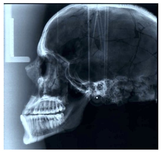 Lateral cephalometric radiograph of the skull.