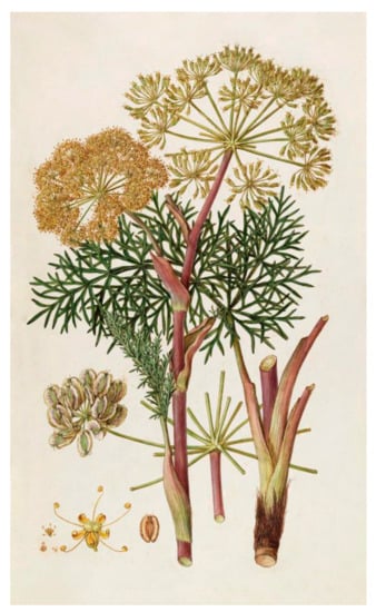 - Mahendra, P.; Bisht, S. Ferula asafoetida: Traditional uses and pharmacological activity. Pharmacogn Rev. 2012, 6, 141–146. [Google Scholar] [CrossRef]