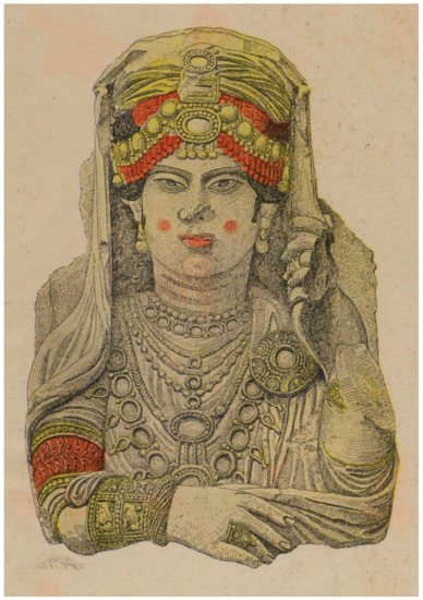 - Raat, A. Diadems: A Girl’s Best Friend? Jewellery Finds and Sculptural Representations of Jewellery from Roman and Palmyra in the First Two Centuries AD; Leiden University: Leiden, The Netherlands, 2013. [Google Scholar]