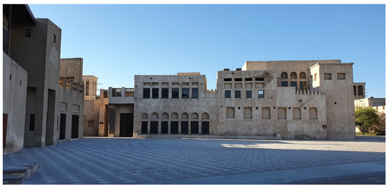 - The first group consists of areas where the preserved buildings present an excellent technical state, considered invariable elements of the urban fabric and important touristic centers, used for nostalgic/prestigious and public programs, with rich cultural–educative programs (museums, exhibitions, souqs). They constitute a magnet for tourist attraction, contributing to the cultural life of the tourist and the local community (the case of Fahidi District and Shindaghah in Dubai [33], the souqs: Shinasiya, Saqr, and Mohammed along the Khor in Sharjah) [34].