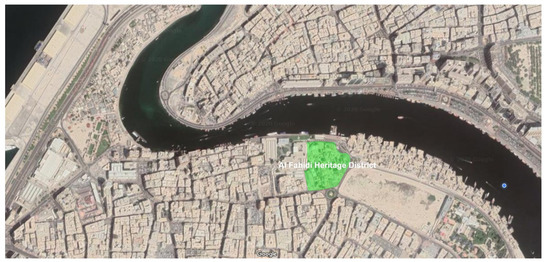 Dubai Historic District is an ongoing project to preserve the UAE’s traditional culture and heritage. Additionally, 60 other separate projects in a 1.5 km2 area are being developed, serving the same goal [38]. This includes the Shindagha area, Al Fahidi Historical Area, and Saruq Al-Hadid Museum area, consisting of museums, exhibition centers, trading boats, restored trade stores, forts, restaurants, and performance centers [39] (Figure 1).