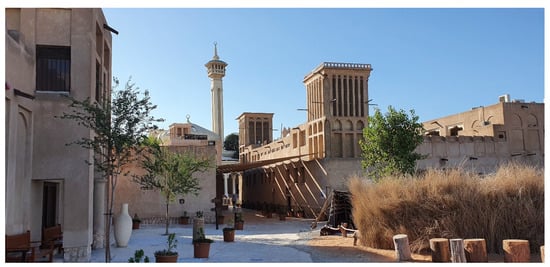 - Manchuette, A.S. Al Bastakiya, The Old Iranian District of Dubai. 2020. Available online: https://www.odyfolioemirates.com/en/dubai/bastakiya--iranian (accessed on 28 July 2020).