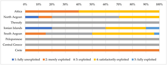 Worth noticing are also certain regional differences as to the degree of CH integration into islands’ tourism profile. The most indicative difference can be observed in the Attica Region (Figure 10), where a significant percentage of responses fall into levels 2 (40.0%) and 4 (60.0%); demonstrating significant internal inequalities in terms of cultural tourism offering among neighboring island entities.