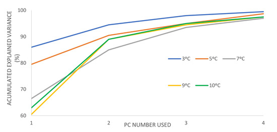The PCA is properly applied with a minimum number of data that have enough rank variation of the variables. To ensure this procedure, it is necessary to have a minimum number of experiments and a range of temperatures, which are controlled with a thermal camera [