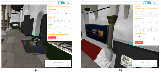 In the fourth step of the methodology, the exhibition is curated again in a digital form. This regards the selection and placement of digital exhibits in their locations in the digital exhibition. For this process, in this research work, we employ the exhibition designer provided by the Invisible Museum platform [
