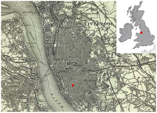 The Roman Catholic population of Liverpool grew during the early nineteenth century from over 21,000 in 1811 to an estimated 50–60,000 by 1830 [10]. Some were able to become successful merchants and businessmen as the city grew with the development of international trade, as first canals and then railways enabled the products of the industrial revolution to reach the docks to be exported across the globe. The typical mix of sophisticated Georgian town houses and slums (with a regional form comprising court housing) spread out from the small historic core of Liverpool, and districts such as Toxteth provided the housing needed for the rapidly growing population (Figure 1).