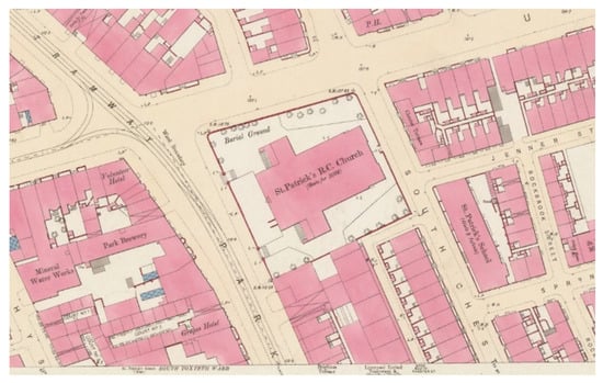 The Toxteth area of Liverpool lies beyond the city centre, and it is an area that includes dense working-class housing, which has had a history of deprivation but also of strong community feeling. Within this setting, the Roman Catholic church of St. Patrick’s is one of the most prominent and architecturally significant buildings in the area, and it has statutory protection having been classified as a Grade II listed building [8]. Discussions regarding diocesan reorganisation and rationalisation of places of worship meant that St. Patrick’s was one of the buildings under consideration for reuse, as its congregation no longer filled the building, and it required considerable investment to conserve its somewhat neglected structure. The local response was to raise funds for the immediate conservation requirements and commence volunteer enhancement of the building and its churchyard to complement ongoing historical research into the church, its priests and its congregation [9]. The University was contacted to see if any expertise could be provided to increase understanding, both for its own sake and to provide additional information on its heritage significance to assist with grant applications.