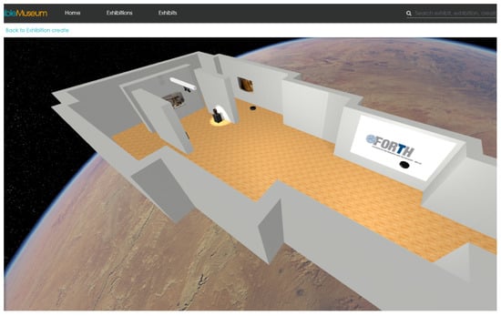 - Zidianakis, E.; Partarakis, N.; Ntoa, S.; Dimopoulos, A.; Kopidaki, S.; Ntagianta, A.; Ntafotis, E.; Xhako, A.; Pervolarakis, Z.; Kontaki, E.; et al. The Invisible Museum: A User-Centric Platform for Creating Virtual 3D Exhibitions with VR Support. Electronics 2021, 10, 363. [Google Scholar] [CrossRef]