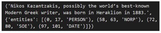 As Python’s basic functions were not sufficient for the scale of the project, there was a need for more appropriate tools provided by additional libraries. Many alternatives were considered (e.g., the NLTK library), but eventually the SpaCy library [27] was selected for a variety of reasons [28,29,30]: