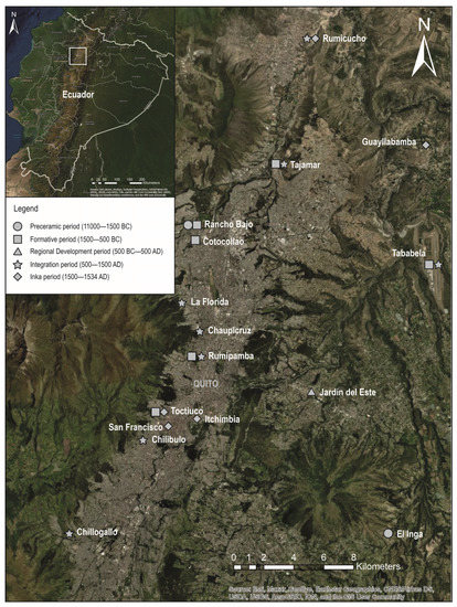 Ordoñez-Araque, R.; Ruales, J.; Vargas-Jentzsch, P.; Ramos-Guerrero, L.; Romero-Bastidas, M.; Montalvo-Puente, C.; Serrano-Ayala, S. Pre-Hispanic Periods and Diet Analysis of the Inhabitants of the Quito Plateau (Ecuador): A Review. Heritage 2022, 5, 3446-3462. https://doi.org/10.3390/heritage5040177