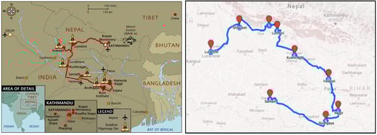 The itinerary of Mahaparinirvana Express (the Buddhist Circuit Train). Source: https://www.irctcbuddhisttrain.com/, accessed on 5 August 2020.