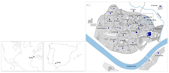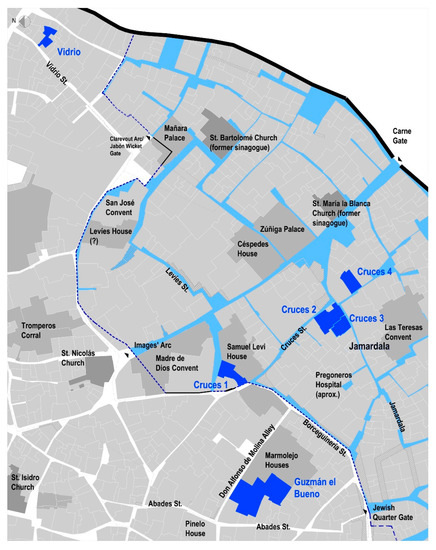 Figure 4). The ownership of most of the houses in the area of Abades Street and Las Gradas Street was in the hands of the Cathedral chapter (more than 1140 apeos and written descriptive records of the cathedral and some charitable hospitals have been consulted in the Archive of the Cathedral of Seville ACS- [