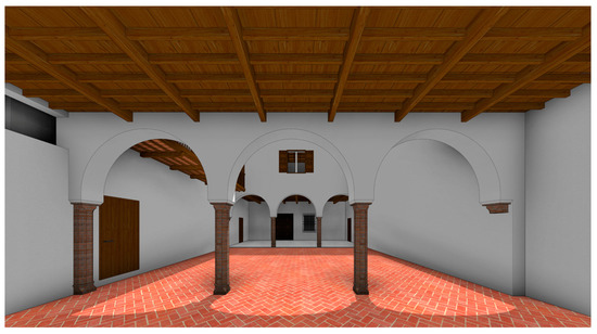 As for their spatial composition, all of them were uncovered, and most of them were on the ground floor (only one on the first floor, called high recibimiento, which fell towards the portals of the Gradas Street). In addition, that space used to have a brick floor, as in the case of the Cruces 2 house. Moreover, there were windows in its walls that looked out from the chambers, both low and high, and balconies. In most cases it had, at least, a doorway, and it was accessed from the casapuerta, a vestibule or closed doorway.