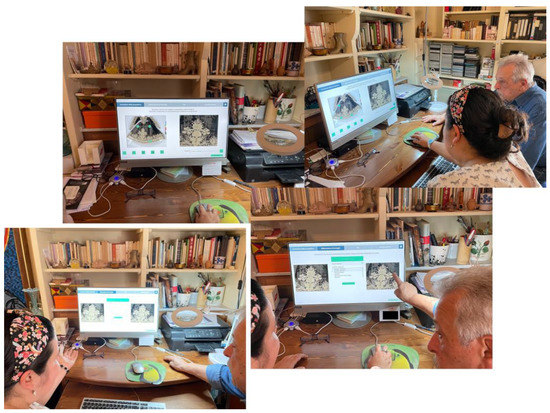 Additionally, we have addressed the importance of museum accessibility both by preparing user scenarios before dealing with the creation of digital tools, and by applying SILKNOW tools to a real scenario. Predefined personas allowed ICT developers to have concrete and visual representations of targeted end users at their disposal, helping them to understand their needs and expectations. Linking these experiences to the physical environment has demonstrated how they can be designed to better support cultural heritage institutions []. The results of our work with the Piraino collection show how useful it is to have in mind a user scenario before addressing the challenges of developing digital tools for cultural heritage safeguarding.