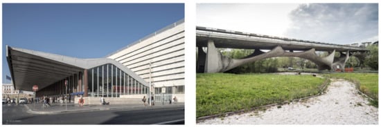 Two examples of concrete buildings. Left Panel: Termini Station in Rome, Italy. Right Panel: Bridge on Basento river in A2 motorway (Italy). Credit: MIBAC, 2018.