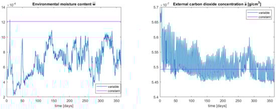 where the constant is the value of the (time-dependent) environmental moisture content computed as
