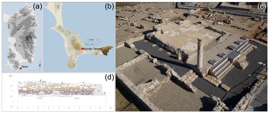 - Zara, A. Il Tempio romano di Nora. Riflessioni sulla dedica in base a un frammento epigrafico inedito. In L’Africa Romana. Momenti di Continuità e Rottura: Bilancio di Trent’anni di Convegni; Atti del XX convegno internazionale di studi (Alghero-Porto Conte Ricerche, 26–29 settembre 2013); Ruggeri, P., Ed.; Carocci: Roma, Italy, 2015; pp. 1889–1902. [Google Scholar]