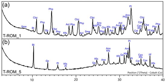 | T-ROM7 | pumice | 0.7 | 0.2 | 32.9 | 3.0 | 14.0 | 3.7 | 2.1 | b.d.l. | b.d.l. | b.d.l. | b.d.l. | 43.3 | b.d.l. | b.d.l. | 0.2 | b.d.l. |