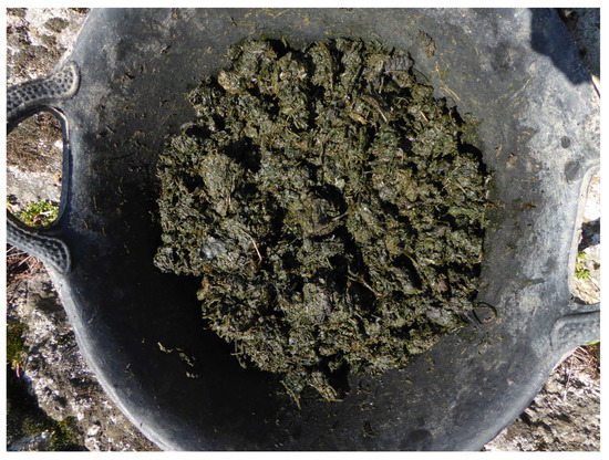 The fermenting crushed woad. Day 1 + 5 (credit: D. Cardon).