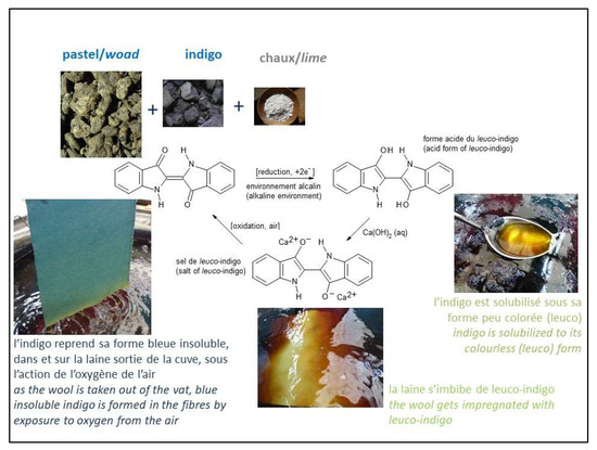 - Cardon, D. The woad vat: Two previously unpublished sources. In Actes/Papers/Beiträge. 2e Congrès International «Pastel, Indigo et Autres Teintures Naturelles: Passé, Présent, Future; Cardon, D., Müllerott, H.E., Eds.; Thüringer Chronik-Verlag: Arnstadt, Germany, 1998; pp. 50–64. [Google Scholar]