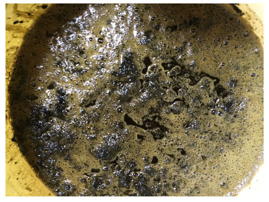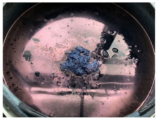 Appearance of the top of the woad and indigo vat after additions of indigo pigment (photo H. Sumi).
