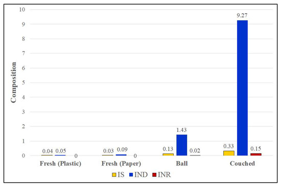 Figure 19 shows that couching has a markedly strong effect on the indigo content in the processed woad by more than 6-fold. Couching is very efficient in concentrating indigo. Although isatin and indirubin contents also show significant increases, their overall quantities are very small.