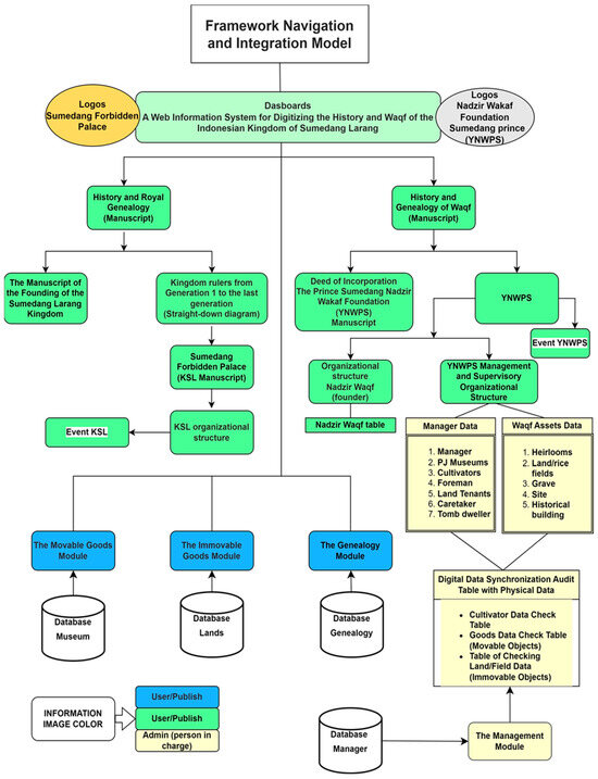 - Sudrajat, R.; Ruchjana, B.; Abdullah, A.; Budiarto, R. Web-Based Information System Framework for the Digitization of Historical Databases and Endowments. Int. J. Data Netw. Sci. 2024, 8, 319–328. [Google Scholar] [CrossRef]