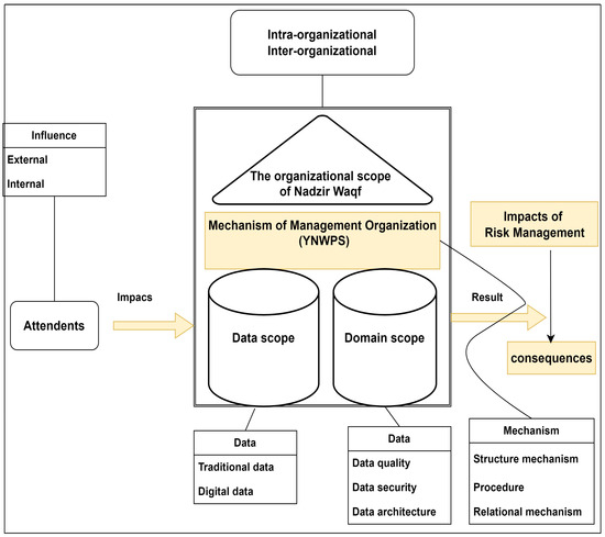 Figure 8’s intra-organizational and inter-organizational relationships illustrate how both internal and external organizations participate in management and oversight. The prior approach is intended to make management and supervision easier, both practically and conceptually [59]. Similar to how fundamental scale data are described, scale data are detailed to form data structures. Before the application launches, standard operating procedures must be created to reduce risk, especially in regard to data updates, which makes it possible to carefully plan out data mitigation for risk management.