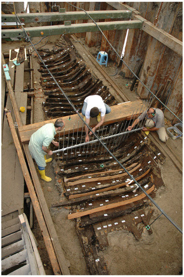 - Kocabaş, U.; Türkmenoğlu, E. Yenikapı Shipwrecks: Fieldwork, Conservation-Restoration Procedures and Construction Features. In Argueologia Nautica Mediterrania; Nieto, X., Ed.; Museu d’Arqueologia de Catalunya: Girona, Spain, 2009; pp. 235–243. ISBN 8439380828/9788439380825. [Google Scholar]