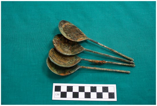 Spoons were also manufactured from metal and wood, and the different types are revealing of the socio-economic status of their owners (Figure 6). This social distinction is also manifested through other objects such as knives, which were differently valued according to the material their handles were made of, such as gold, bone, ivory, copper, and wood [].