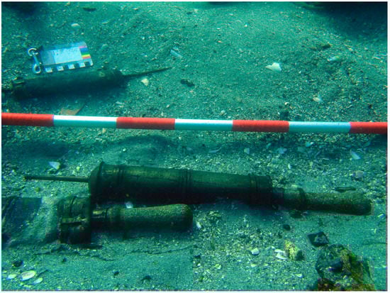 - Knabe, W.; Noli, D. Die Versunkenen Schätze der Bom Jesus. Sensationsfund Eines Indienseglers aus der Frühzeit dês Welthandels; Nicolai: Berlin, Germany, 2012. [Google Scholar]
