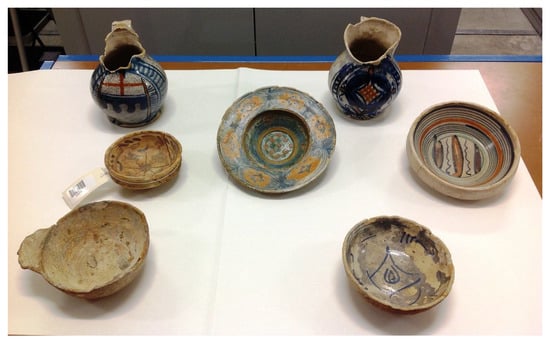 The fragmentation index of the ceramic materials is varied and can be traced back to the sinking dynamics of the ship, which will be further studied with the continuation of the excavation in order to understand whether or not the ship was also affected by explosions and to what extent. The seabed on which the wreck lies is quite deep (−48 m), and this may have easily caused the types of ceramic, such as the fragile Montelupo tin-glazed pottery, to shatter.
