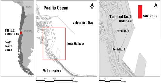 Figure 1. Map showing the location of the remains of the Chilean barque Infatigable (site S3 PV) in the inner harbour of Valparaiso, located on the central coast of Chile (33° S) (Illustration: Francisca Morales).