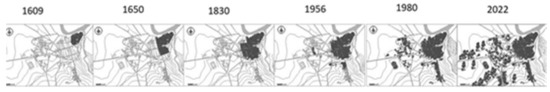 Urban development maps of Testour (1609–2022).