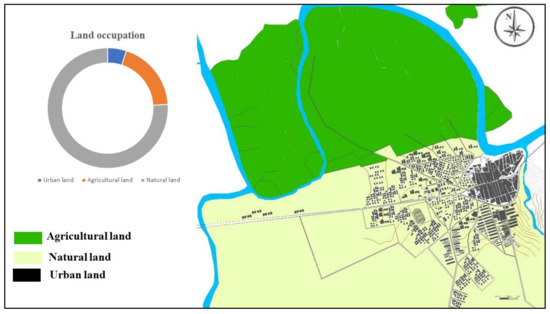 Highlighting the respective allocations to urban and agrarian parcels shows the large proportion of agricultural surfaces. Cross-referencing the land-use map of 2018 allowed us to make a schematization of land use of Testour (Figure 7). The analysis of this map as well as the results of analysis shows that 163.58 ha presents the urban soil, the agricultural soil presents a total surface of 2364 ha and the natural soil present 578.2 ha. The value of the urban soil has almost tripled over 30 years, going from 55.87 ha in 1988 to 163.58 ha in 2018.