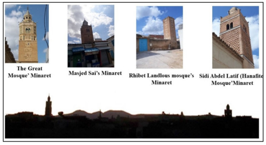 Tunisia is several thousand years old and carries within it the remains of many civilizations including the Moriscos. After 1492, the date of the conquest of Granada (Spain) by the Catholic kings, the ancient Andalusians had already transformed into Mudejares (Muslim who lives in Christian lands). As early as 1502, they recognized a compulsory reconversion wave. From this date, we speak about the Moorish population (A term designated to Muslims reconverted to Christianity and their descendants) [1]. The 1609 expulsion decree marked the beginning of a diaspora and an asylum in new lands, as well as the creation of several urban and rural centers in the Maghreb countries. According to Al-Makkarî, Tunisia was the country that received the largest number of Moriscos [2]. The northern hinterland of Tunisia experienced an urban revolution with the construction of fourteen centers [1,3,4,5]. From their native land, the Moriscos have imprinted their own logic of the medina’s organization, which utilizes Islamic cities’ model while keeping a certain specificity [6,7,8,9]. These historic centers, therefore, acquire a specific identity and are a focus of interest for many researchers. Historic districts have always been considered an important part of local culture, a basis for a prosperous society’s development, and an integral part of the local community’s collective memory [10]. Any development action undertaken in these areas must carefully consider the symbology of the surrounding urban fabric and buildings [11,12]. This historical urban landscape presents a circulation of a rhetorical and mobilizing model, situated between three vast and indefinable fields of study: landscape, urbanism and heritage. All this is considered in a territorializing context and commonalities’ temporality [13,14].