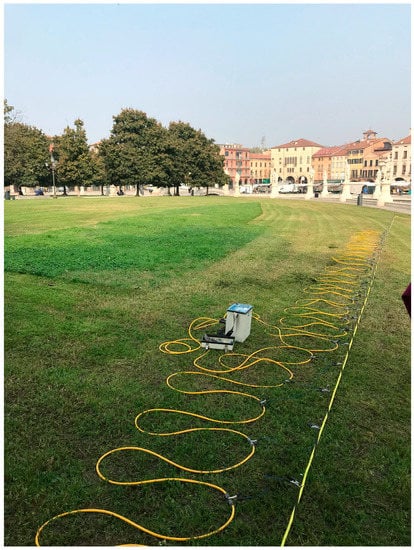 GPR acquisition in the outer part of Prato della Valle (L13 in Figure 4).