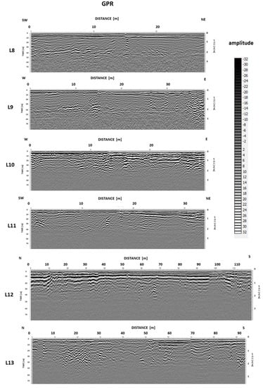 On the other hand, for the FDEM method, although the investigation depth could be overcome, the same reasons related to the presence of magnetic and EM noise led to considering this technique inappropriate in this context. The prior information about the conductive sediments [2,3,4,5] under and outside the archaeological remains (supposed resistive), and different, maybe less conductive soils in the upper part drove them to the use of the GPR and ERT. Thus, in this case study, we showed how the highly favorable logistic, particularly for ERT measurements, made it possible to integrate this technique with GPR acquisitions, helping the identification of archaeological remains overcome the unexpected problems encountered by GPR measurements.