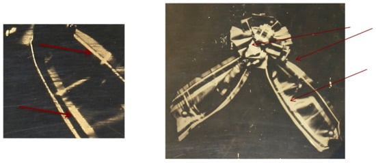 We can almost definitively say that the recurring “overexposed” lines of the ribbon, which are repeated in each of the transparencies, are either blue or white, because this is exactly how a very saturated ultramarine type blue or white presents itself. “Haloing” is very common and consistent with wet collodion (