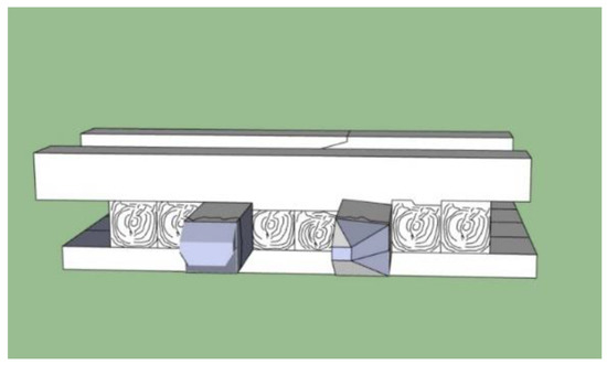 Arrangement: A curious fact, which undoubtedly constitutes the peculiarity of this set, is the arrangement of the frames in pairs, i.e., their double arrangement. In other words, we are not dealing with a sequence of one room for one or two empty spaces, as in the other Renaissance wrecks known to us, but with two rooms for one space. Each of the pairs M0/M1, M2/M3, and M4/M5 forms a double frame separated from each other by an empty space with a scantling of 9 to 12 cm (Figure 8).