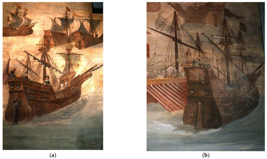 A type of ship among the most important Mediterranean merchantmen of the Renaissance, they belong to a typology called nave in Italian. (plur. navi). They were particularly used by the Genoese as the main means of transport for trade and were built in private shipyards [9] (p. 46). Lacking Genoese sources, the main textual information on the constructive characteristics of navi is provided by Venetian authors such as Michele da Rodi [10] and Zorzi Trombetta da Modon [11] for the 15th century, or Teodoro de Nicolò [12] and the Ragusan Nicolò Sagri [13,14] for the 16th century.