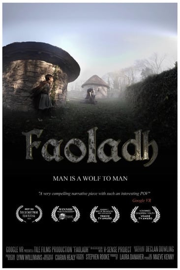 - Dowling, D.; Fearghail, C.O.; Smolic, A.; Knorr, S. Faoladh: A Case Study in Cinematic VR Storytelling and Production. In International Conference on Interactive Digital Storytelling; Rouse, R., Koenitz, H., Haahr, M., Eds.; Springer International Publishing: Cham, Switzerland, 2018; pp. 359–362. [Google Scholar]